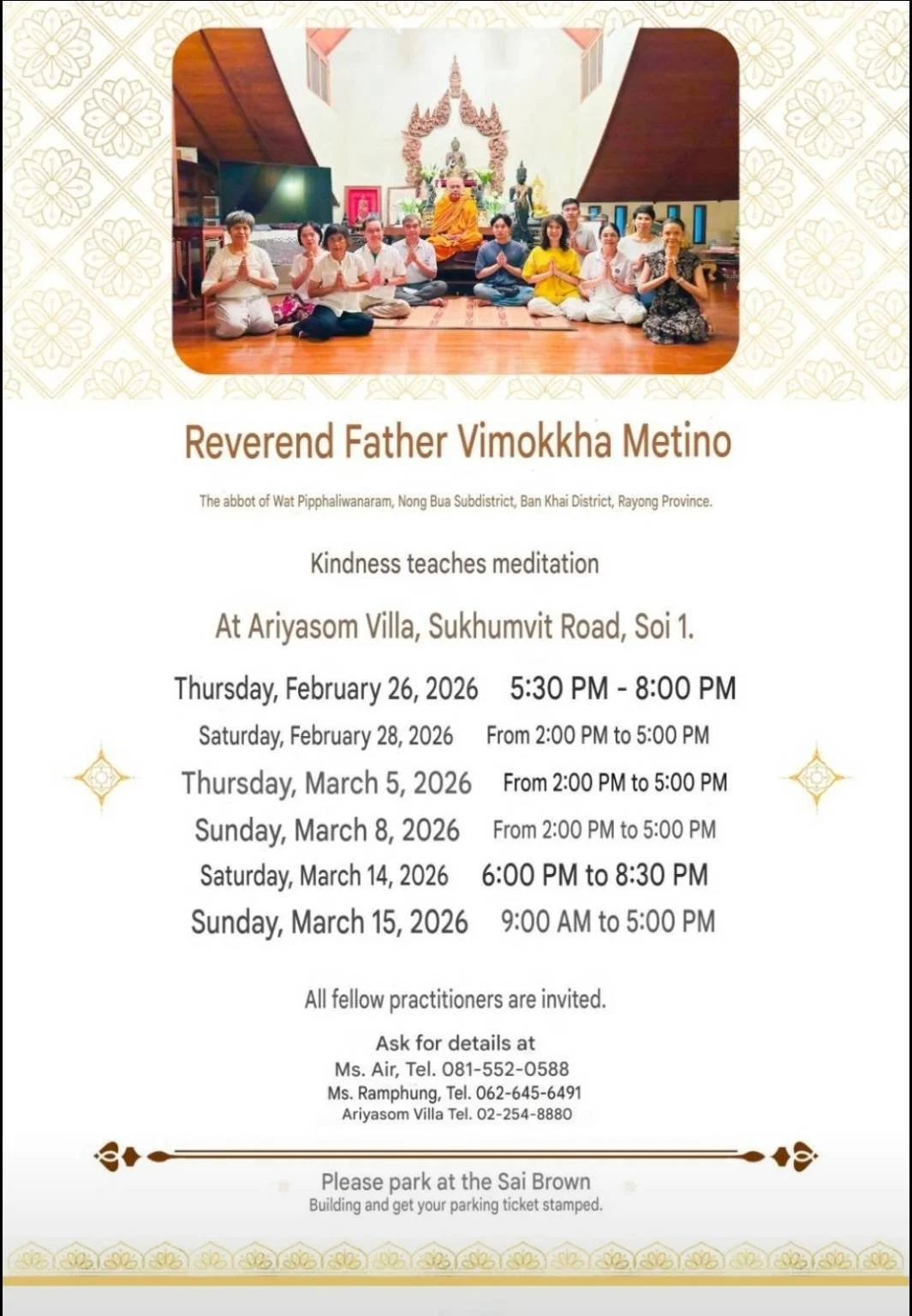 Mindfulness & Meditation Classes at Ariyasom Villa, Sukhumvit Soi 1, Bangkok